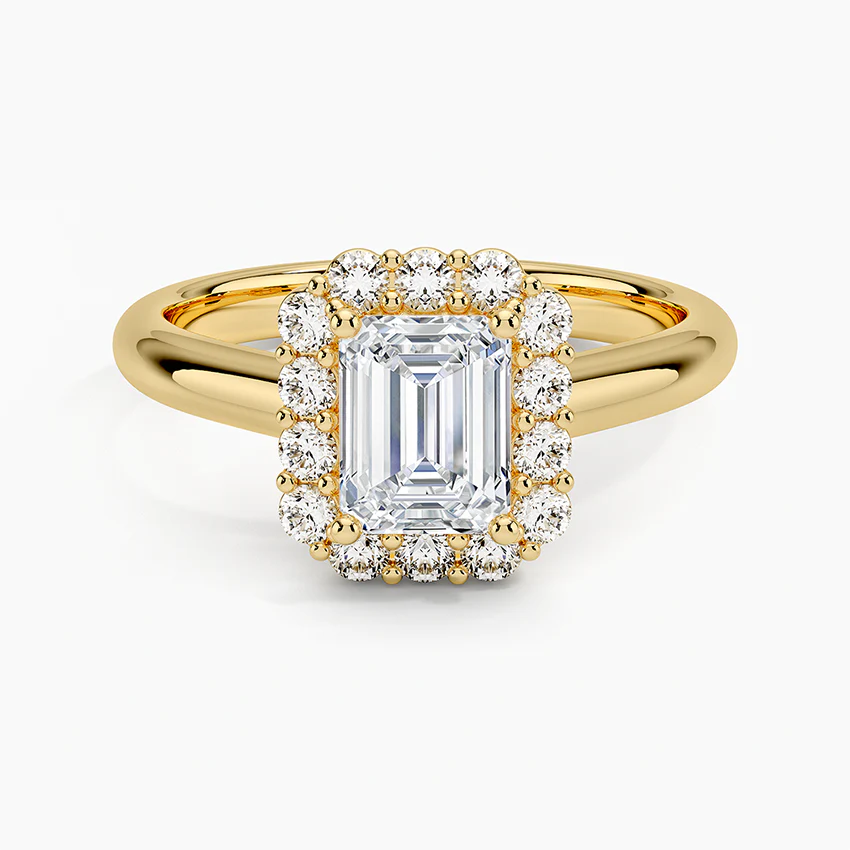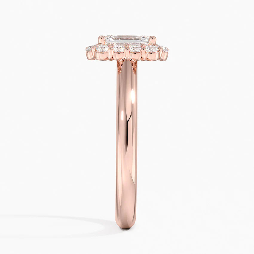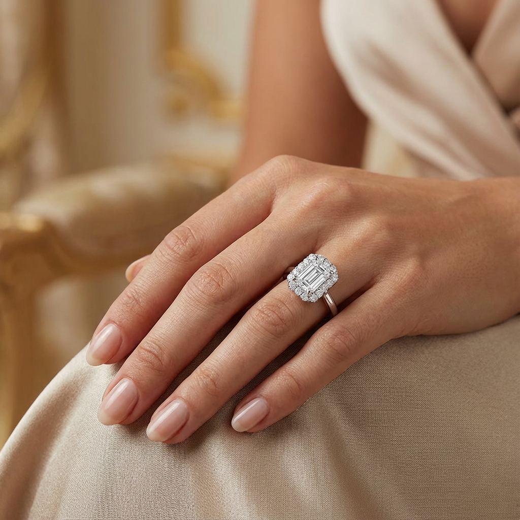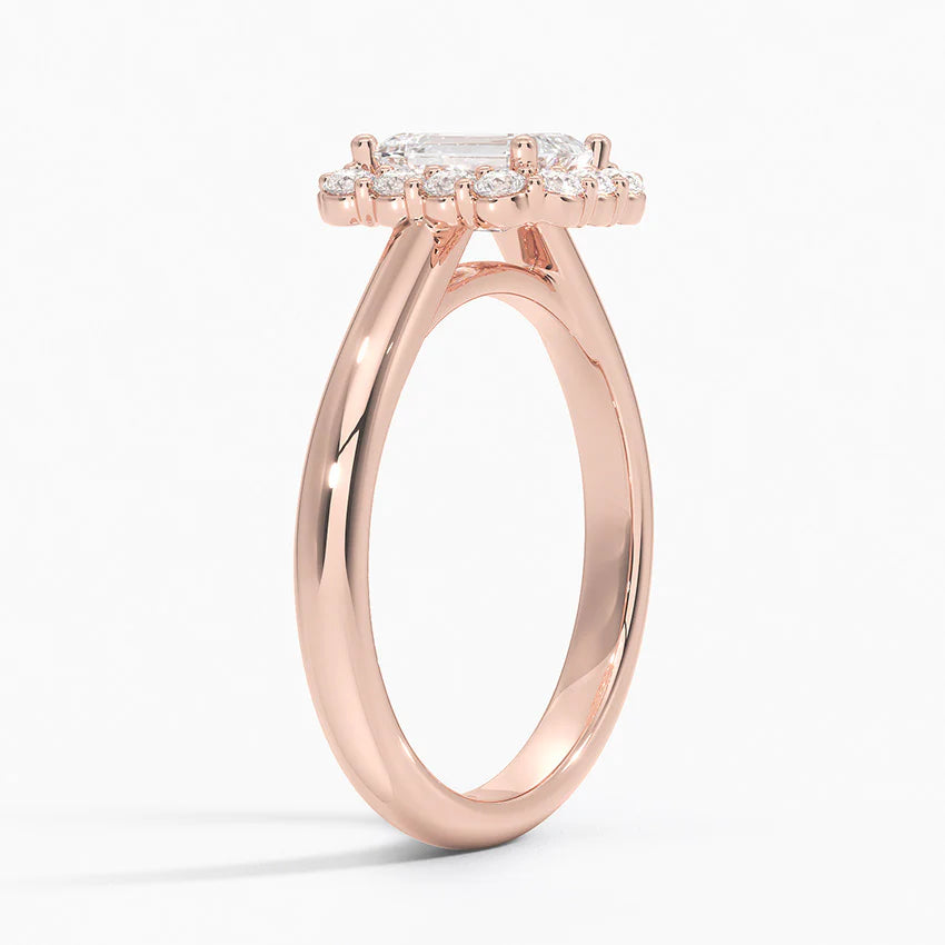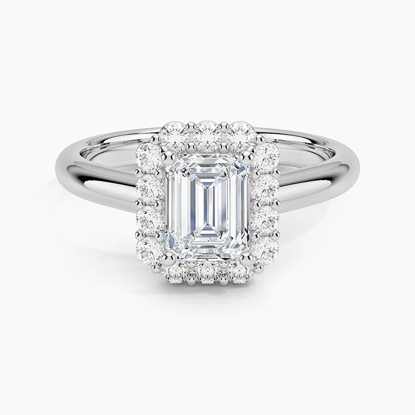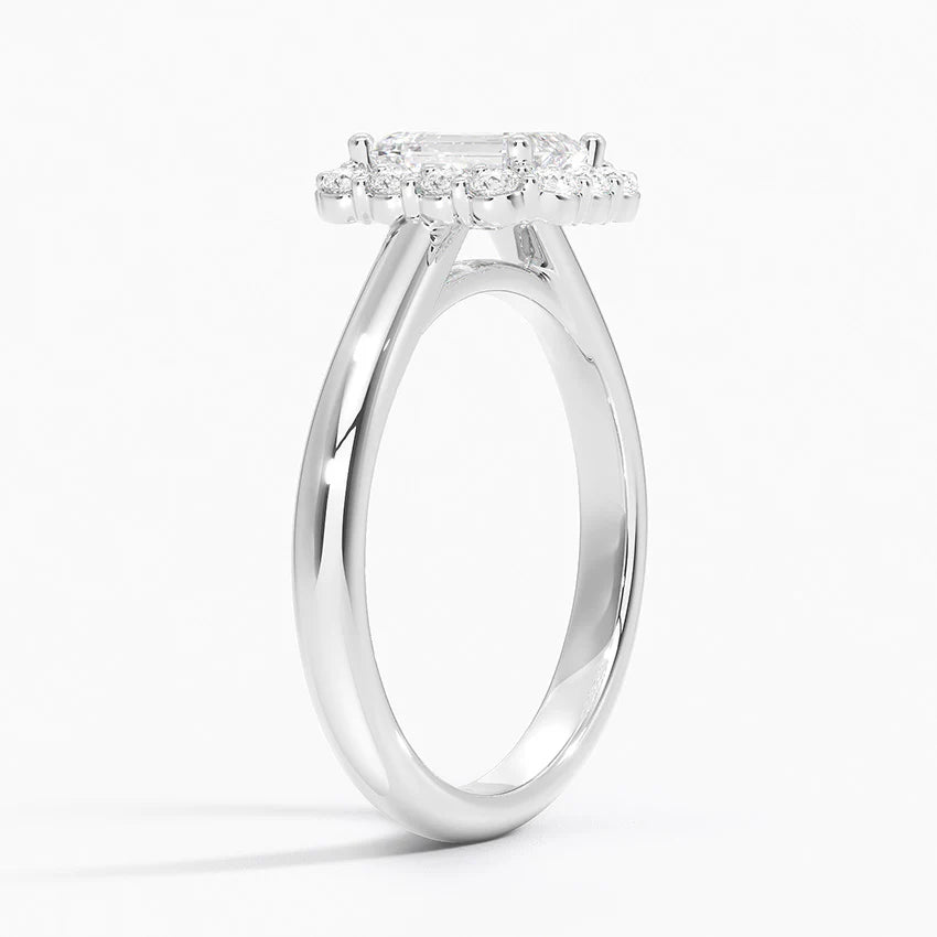 こちらは エメラルドカット × ヘイロー(Halo)デザイン の上品で華やかなリングです。