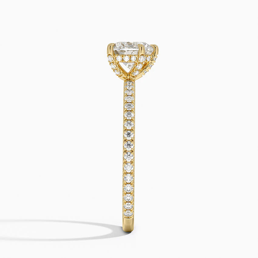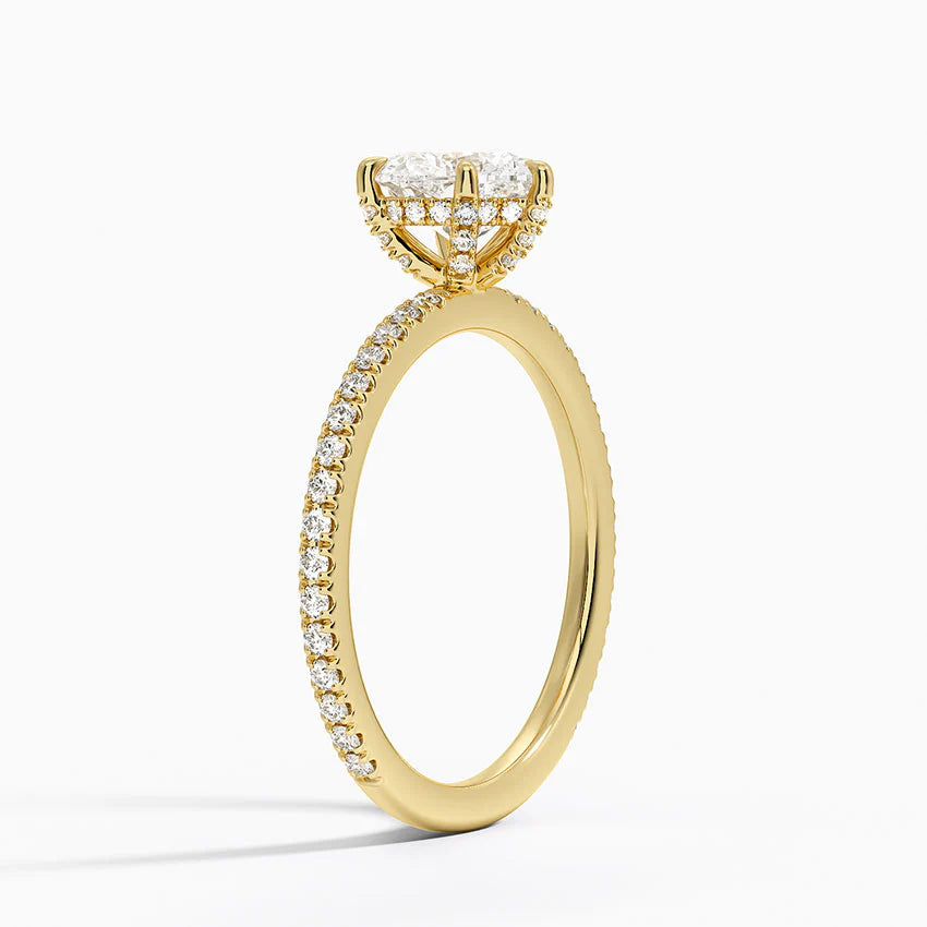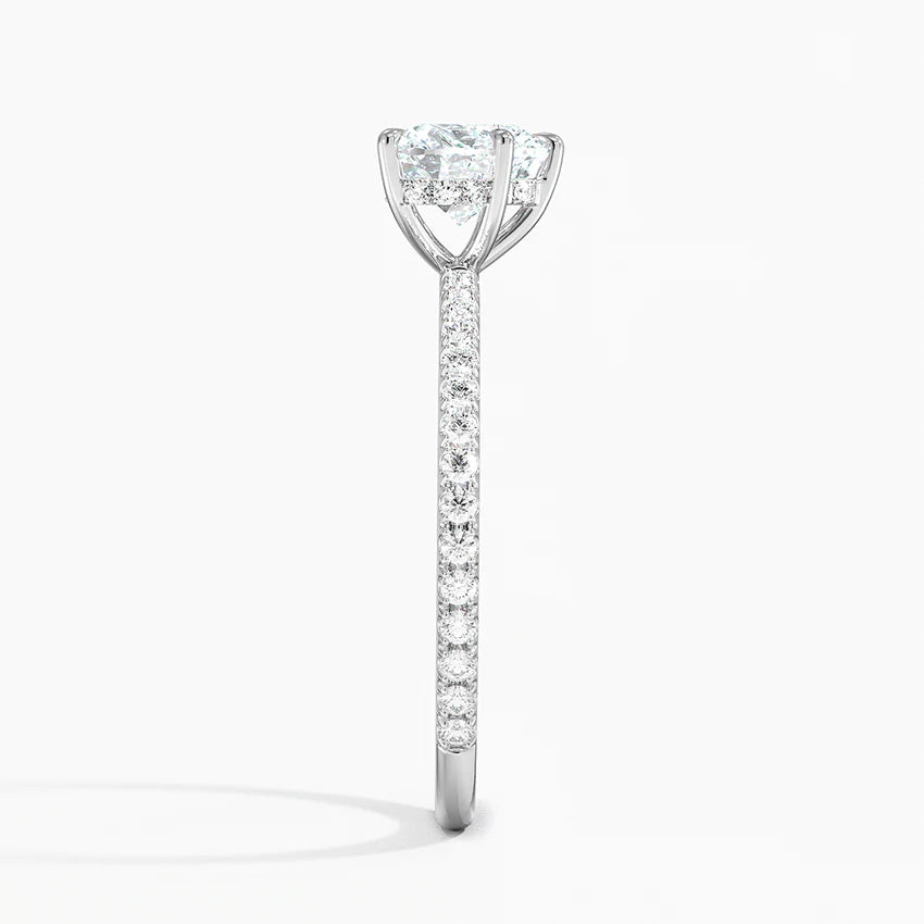 繊細に敷き詰められたメレダイヤが、まるで星座のきらめきを纏ったように主石を美しく照らし、