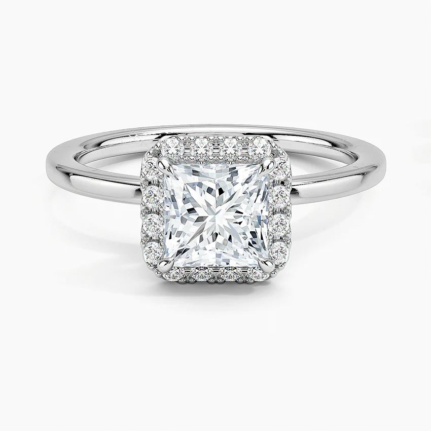 こちらは プリンセスカット × ヘイロー(Halo)デザイン の上品で華やかなリングです。