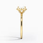 センターダイヤを囲むメレダイヤが光を集め、全体の輝きを最大限に引き立てる人気のデザインです。