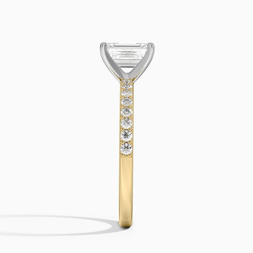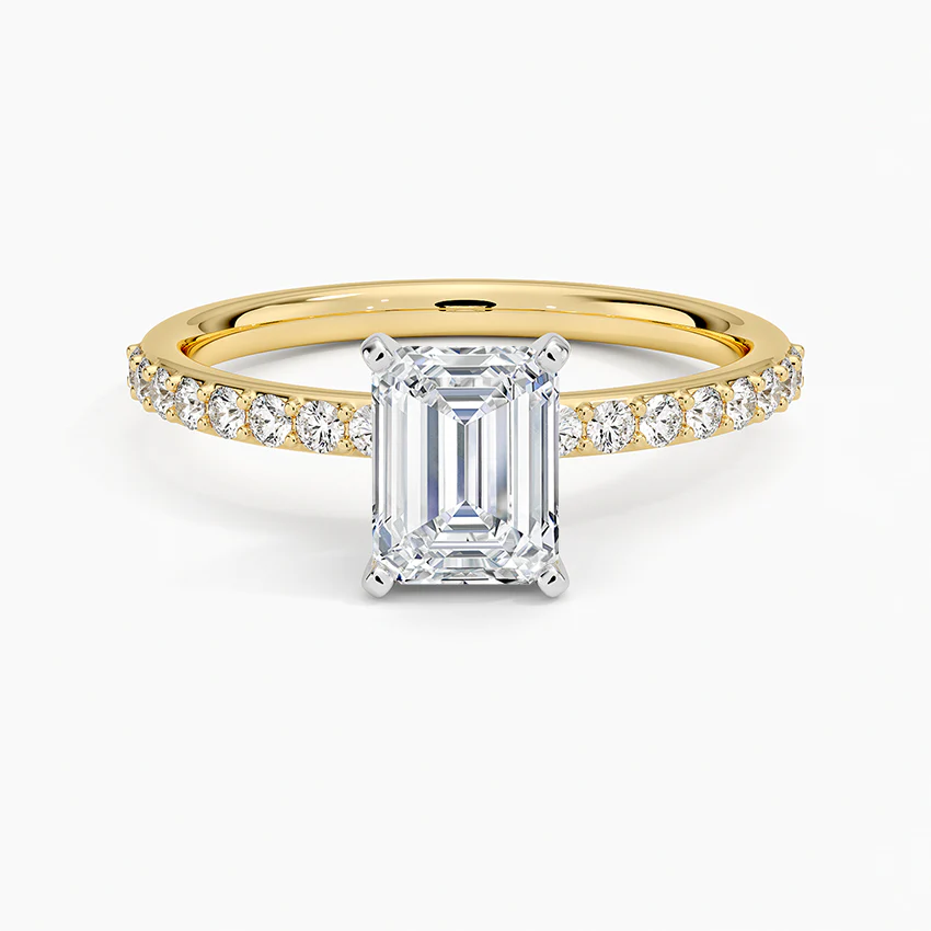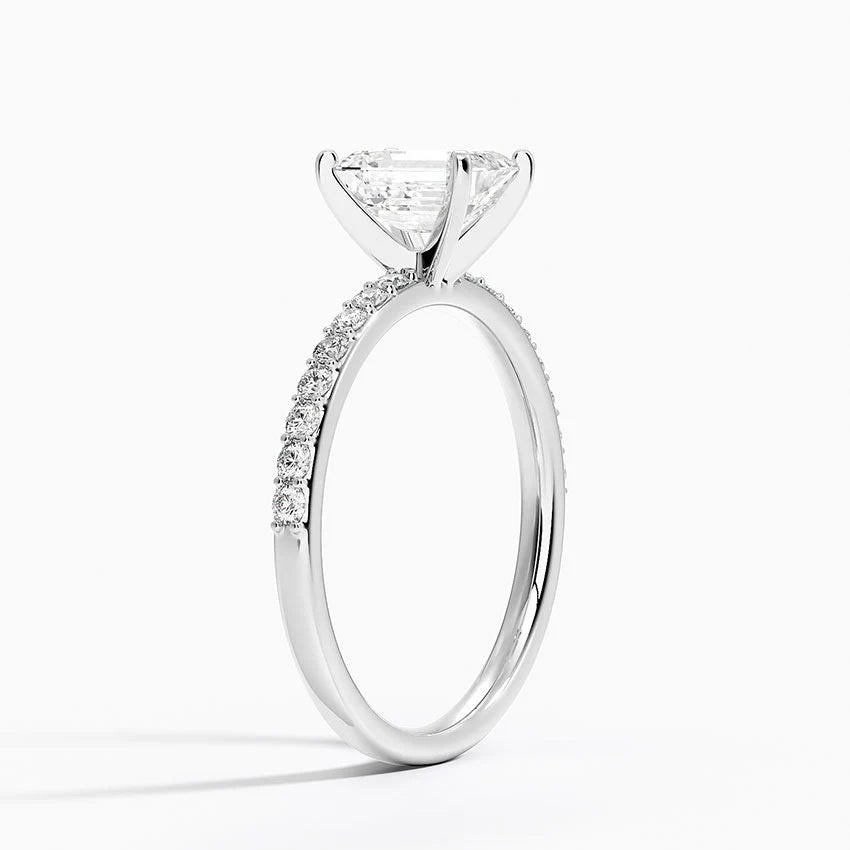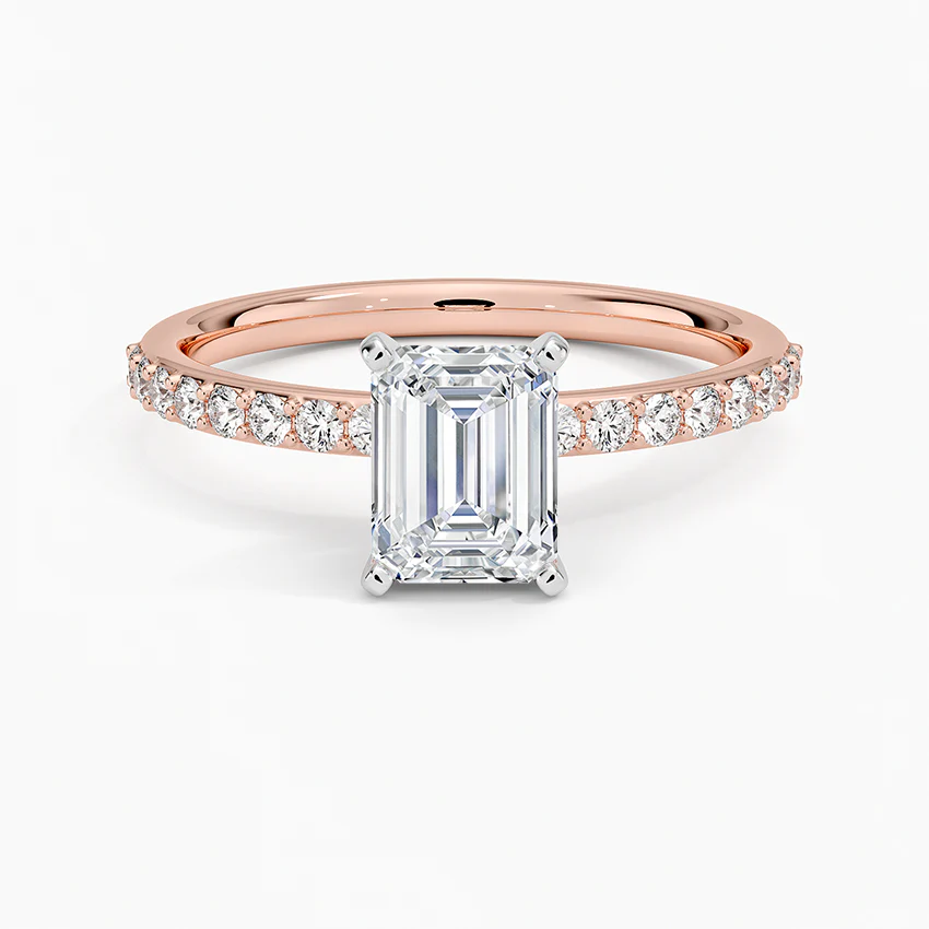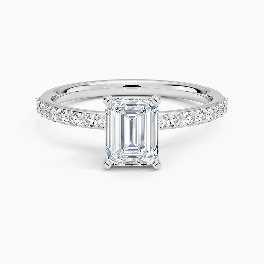こちらは エメラルドカット × パヴェ(Pavé)デザイン が特徴の、